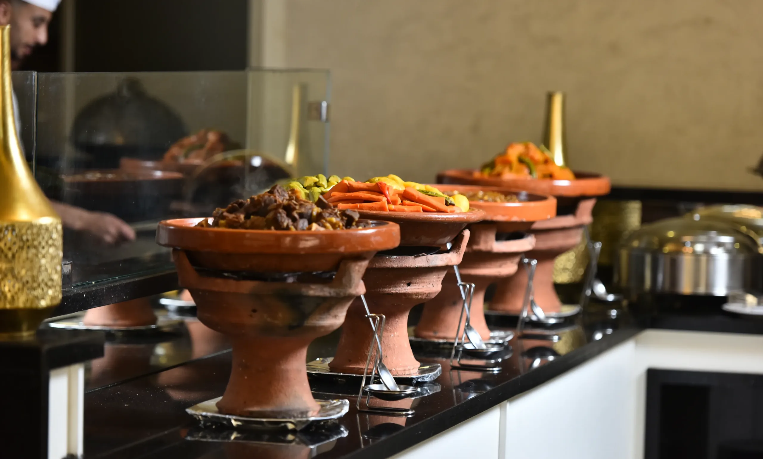 Notre Palace à Marrakech est une destination culinaire en soi. Nous vous invitons à un véritable voyage des saveurs, orchestré par des chefs experts. Notre offre propose une expérience gastronomique variée et haut de gamme, allant de la cuisine marocaine raffinée (sublimant les épices locales) aux spécialités internationales.